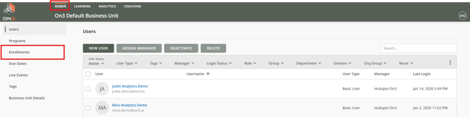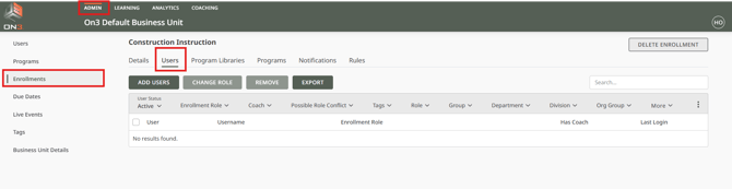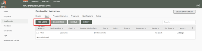 Adding Users to an Enrollment in On3 Learn