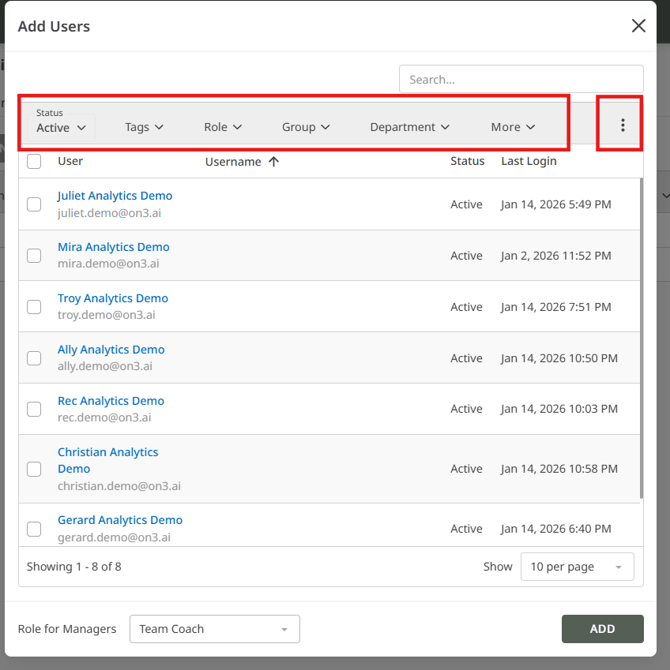 Once your Enrollment has been set up, the next step is to add users so they can access the assigned learning programs. Adding users to an Enrollment in On3 Learn is quick and flexible, allowing you to select individuals or add users in bulk using filters.
