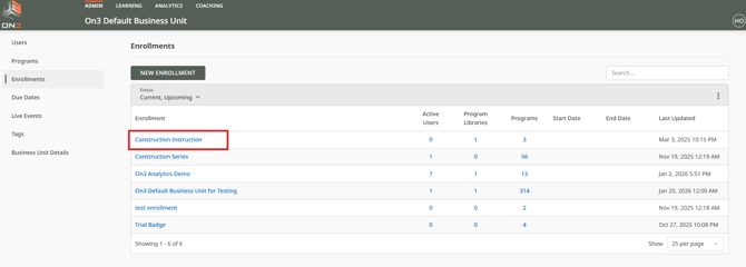 Click Enrollments to view the list of available enrollments.