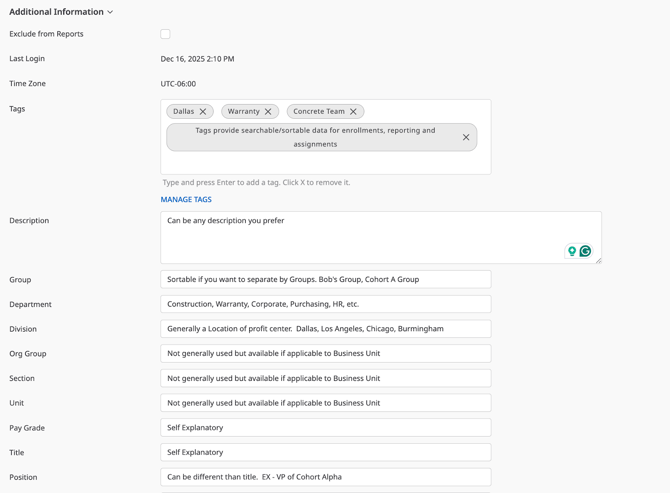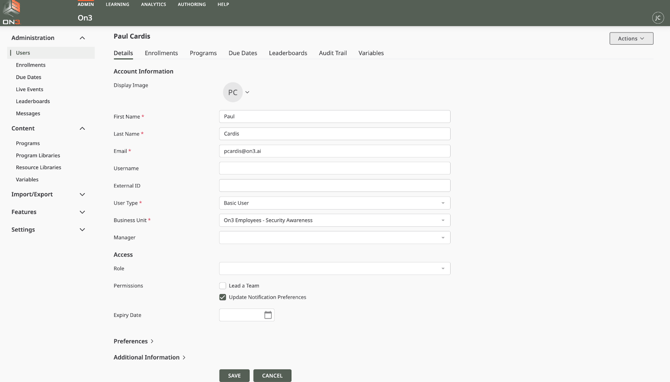 Keeping user information complete and up to date ensures smooth administration within On3 Learn.